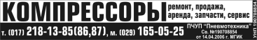 | Аренда компрессоров и пневмоинструмента | (017) 284-29-11, (029) 165-05-25 | |||