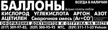 | Смесь сварочная (Ar+CO2) | (029) 311-11-25, (029) 500-95-93 | |||