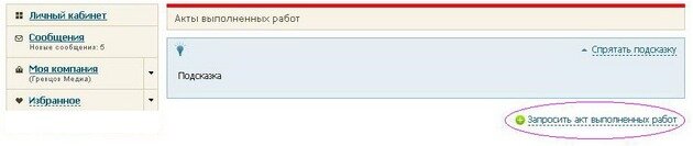 - Нажать на «Запросить акт выполненных работ»