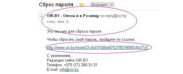 После введения электронного адреса система отправит письмо с ящика с темой «Сброс пароля» и сообщит об отправке.